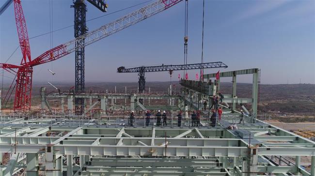 经过一个多小时紧张有序的现场施工,首根大板梁下梁吊装顺利就位。大板梁的成功吊装,标志着1号锅炉受热面安装工作即将全面展开。