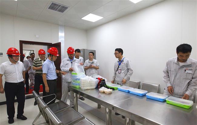 在试运指挥部和员工配餐室,王军营详细了解了职工的伙食情况,强调一定要关心奋战在项目建设一线的员工生活,确保高温天气下,全体参建人员吃得好,干得好,安全高效地完成既定的工作任务。