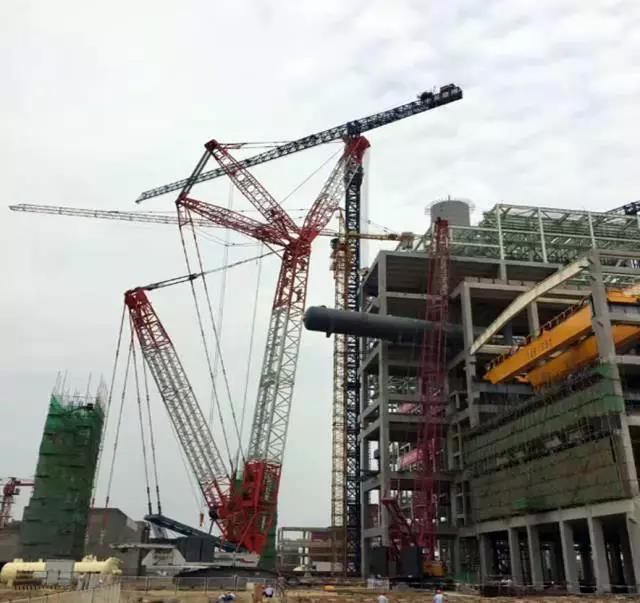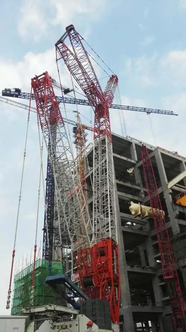 7月23日,#1机组三台高压加热器开始吊装,三台高压加热器总重达420吨。