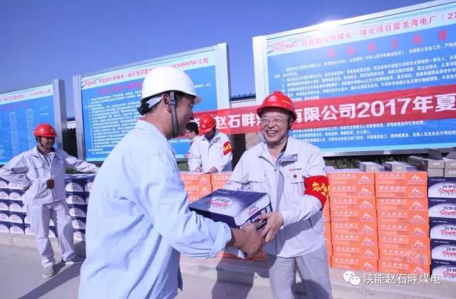 在送清凉活动现场,公司副总经理王学民、副总经理李智飞代表项目建设业主方向各参建单位发放了矿泉水、饮料和防暑降温药品,叮嘱各参建单位注意做好现场作业环境的安全工作和防暑降温工作,保证参建人员清凉过夏,平安过夏。