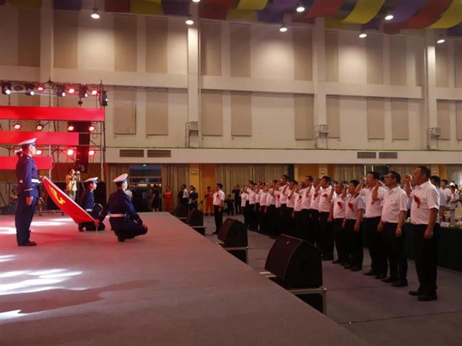 表彰结束后,王栋带领公司全体党员重温入党誓词。在鲜红的党旗下,全体党员举起右拳庄严宣誓,字字千钧、句句铿锵,表达了对党的忠诚信仰和真挚情感,以及为党和人民的事业奋斗终身的庄严承诺。
