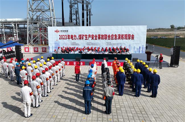 9月15日,陕投集团2023年电力、煤矿生产安全事故联合应急演练在赵石畔煤电成功举办。省国资委社会责任处处长方启权、国家矿山安全监察局陕西局救援指挥中心主任钟楠,集团公司党委委员、陕西能源总经理王栋,榆林市应急管理局副局长曹锦峰、榆林市能源局党组副书记折晓云莅临现场观摩。