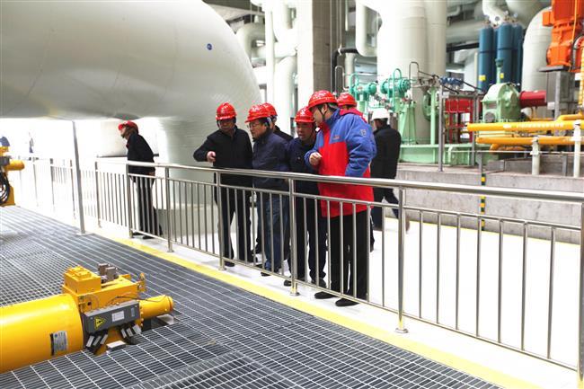 14日晚20时许,在公司董事长王栋、总经理王明川及班子其他成员的陪同下,赵军副总经理来到生产调度楼观摩了企业文化展厅,在解说员声情并茂的讲解下,全面了解了项目建设大事记、项目亮点、产业布局、生产流程、企业文化、党的建设、员工风采、领导关怀、企业荣誉等。随后观摩完生产调度中心,又深入主厂房16.5M汽机平台、集控室等重点区域,详细了解了1号机组试运、主要设备性能以及2号机组安装进展等情况。