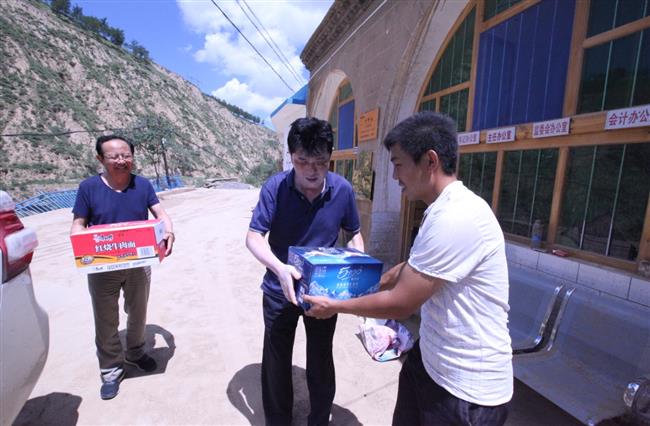 今夏陕北地区遭遇强降雨,许多地区遭遇洪涝灾害,对居民生产生活造成重大影响。公司始终牢记国企担当和扶贫使命,时刻牵挂公司精准扶贫对象的受灾情况。8月9日,公司监事师钒耘代表公司前往精准扶贫包扶对象横山区高镇白面宽村调研受灾情况。 在高镇党委书记梁文国的陪同下,师钒耘前往白面宽村村委会进行了慰问,送上了方便面、饮用水等应急食品,详细了解了白面宽村的整体受灾情况。在村委会负责人的陪同下,对村委会办公场所遭受破坏情况和扶贫援建生产道路毁损情况进行了查看。师钒耘提醒村委会做好相关安全防护,防止洪涝再次侵袭及次生灾害的发生,表示将根据调研情况对白面宽村给予一定援助,帮助村上对办公及生产设施进行修缮,同时鼓励大家积极应对灾后生产,将灾害损失降到最低,确保脱贫工作任务的顺利完成。(办公室 谭松林)