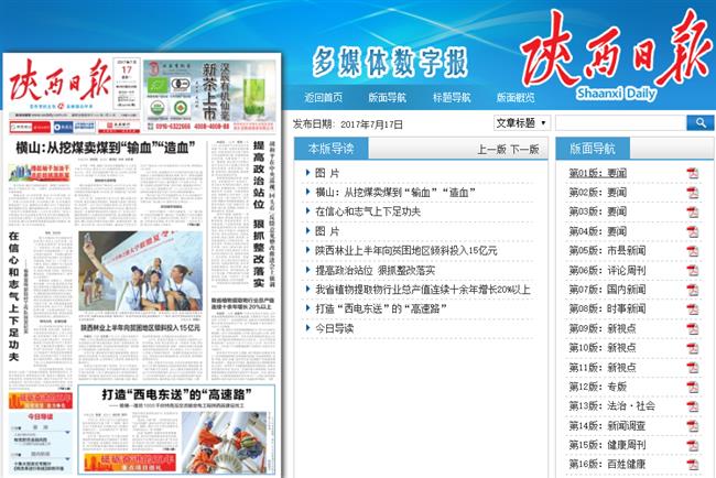 ——摘自7月17日《陕西日报》头版头条:横山从挖煤卖煤到“造血”“输血”