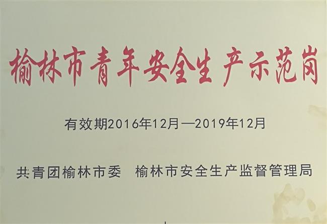 近日,公司安环部荣获2016年度榆林市“青年安全生产示范岗”荣誉称号。