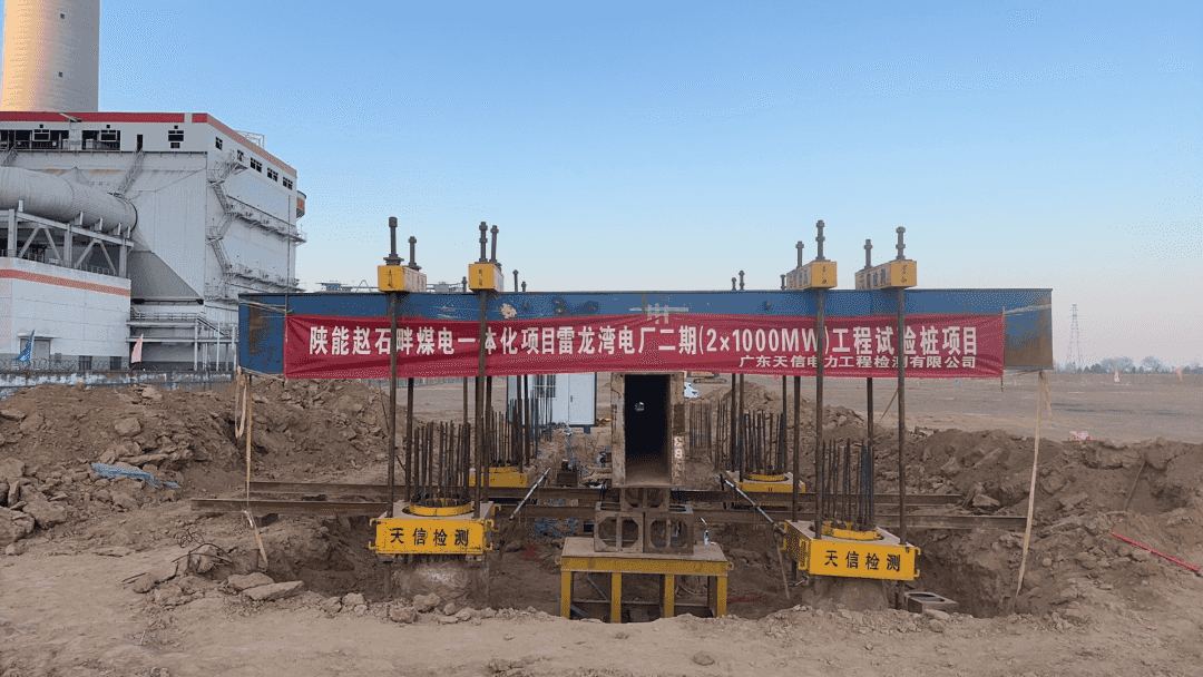 1月20日,陕投赵石畔电厂二期2×1000MW机组项目钢筋混凝土灌注桩试桩检测施工正式启动,为项目建筑物基础设计与施工开展数据采集及分析工作。本次试验采用φ800mm钻孔混凝土灌注桩,成孔深度36.5m,共计布设11根试验桩,检测内容涵盖单桩竖向抗压静载试验、高低应变检测等关键项目。