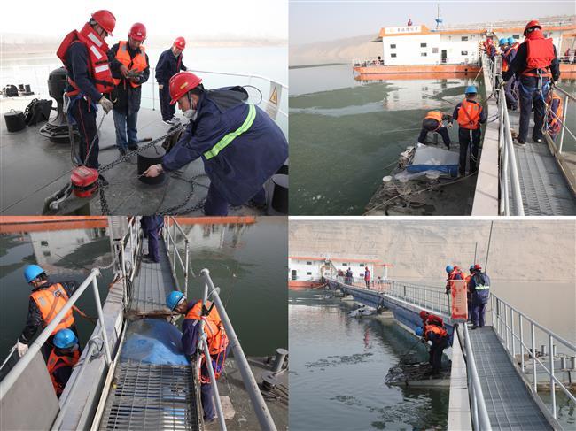 目前,抢修工作仍在进行中,据了解,此次抢修需要增设库底钢锚,更换浮箱钢索,增加固定钢丝等,为进一步加固浮箱,公司在上游口岸浇筑一个四栓混凝土底座,通过钢索牵引,增强抗风能力。(朱正雲)