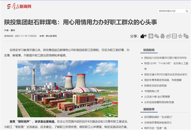 群众新闻网:陕投集团赵石畔煤电:用心用情用力办好职工群众的心头事