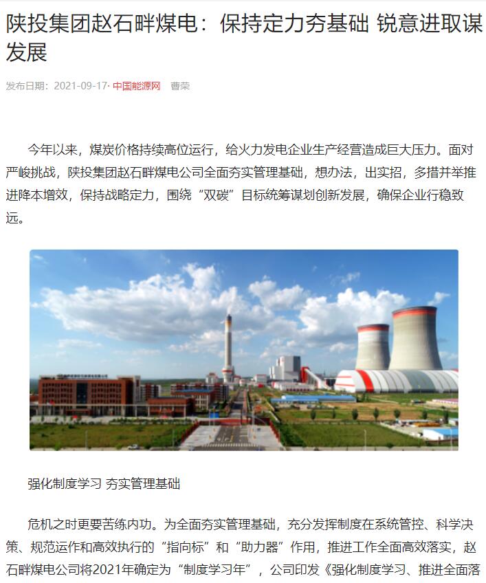 中国能源网:陕投集团赵石畔煤电:保持定力夯基础 锐意进取谋发展