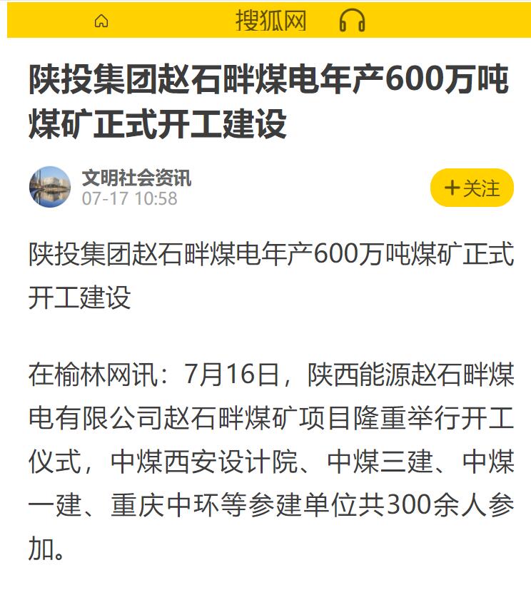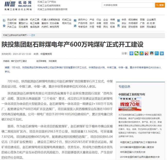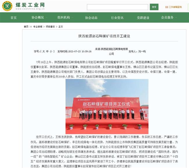 7月16日,公司煤矿项目正式开工建设。人民网、中国煤炭网、煤炭工业网、机经网、新浪新闻网、网易新闻网、搜狐网、在榆林网等多家媒体作了相关报道……