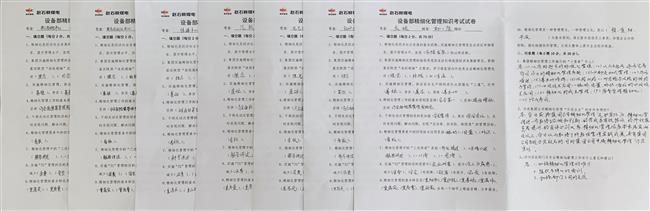 本次考试试题围绕精细化管理坚持“安全第一”、“提质增效”的基本原则,结合实际工作的“双检”(巡检、点检)、“三基”(基础、基层、基本功)、“四应用”(编码、定置、标识、看板)等要点,加深员工对精细化管理的认识。试卷中,将精细化管理的“干部走动”、“三述两清”、“7S”等重点涵盖,设置主观描述题,让大家对部门的精细化管理工作建言献策。