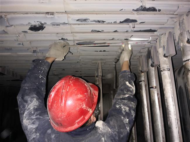 设备隐患,全面排查。锅炉专业坚持“逢停必检”,在1号锅炉防磨防爆检查中发现局部受热面存在微量吹损,多处防磨瓦松动、翻转。他们严格执行有限空间作业规定,克服飞灰、高空、狭小空间等不利因素,对受热面管子加装防磨瓦,并对存在缺陷进行修复。汽机专业进行1号机组高速混床检修,他们进行了水帽检查清理,布水板紧固,间隙测量;内部衬胶层检查等工作。灰硫专业对脱硫系统、除雾器冲洗、电除尘系统、湿电系统全面检查检修。热工专业全面排查风烟和制粉系统温度元件磨损情况,清理吹扫各种控制箱柜,检查紧固MFT和DEH柜内端子等。电气专业对#1炉脱硝电加热器进行内窥检查,清理检查#1发电机定子线圈励端进水滤网。电气自动化中心对现场电气盘柜封堵进行再排查,盘柜接线进行紧固、吹扫,并按照国网公司新冠肺炎疫情防控期间做好继电保护和稳控装置的相关要求进行排查检查工作。