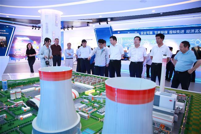 观摩团首先乘车参观了项目厂区。在公司企业文化展厅,详细了解了企业发展大事记、项目亮点、环保指标、主要设备性能、党建文化等基本情况。在生产调度中心,张书记通过观看项目掠影,了解了项目全貌及整体布局情况,并通过视频电话,听取了集控值班人员关于1号、2号机组生产运行情况汇报。