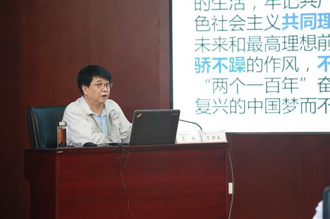 王栋从新时代中国共产党的执政使命、习近平新时代中国特色社会主义思想的核心要义及基本内涵和历史贡献,新时代中国发展道路和发展战略三个方面,并结合当前社会形势以及企业实际,深入浅出、形象生动、全面系统地阐述了习近平新时代中国特色社会主义思想。